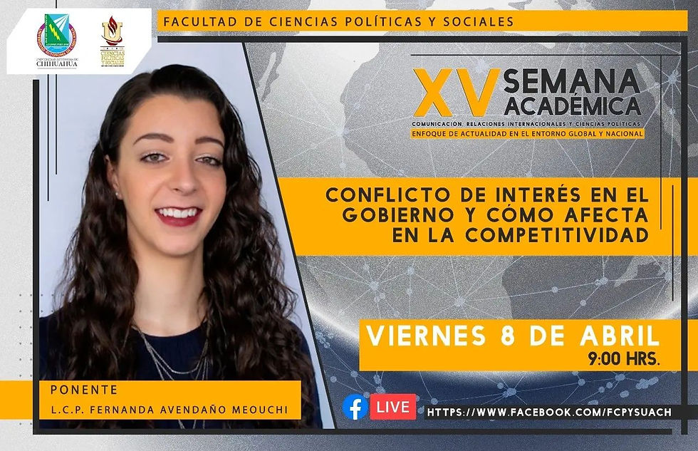 El pasado viernes 8 de Abril se dio una conferencia relacionada con los intereses del gobierno y su competitividad en el ámbito, impartida por la ponente Fernanda Avedaño Meouchi.