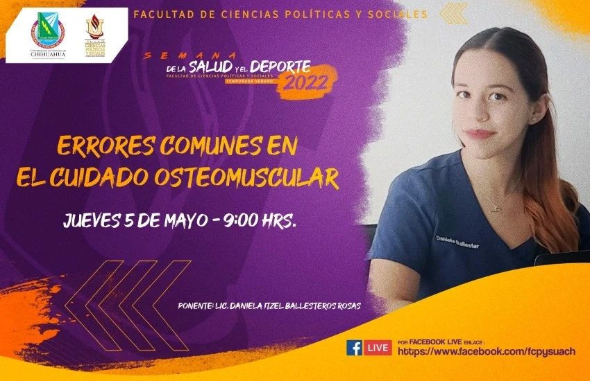 El pasado jueves 5 de Mayo, a las 9:00 Hrs. La Lic. Daniela Itzel Ballesteros Rosas, impartió una conferencia acerca de los errores que se cometen al momento del cuidado osteomuscular, en donde se pueden resaltar muchos puntos importantes acerca del tema.
