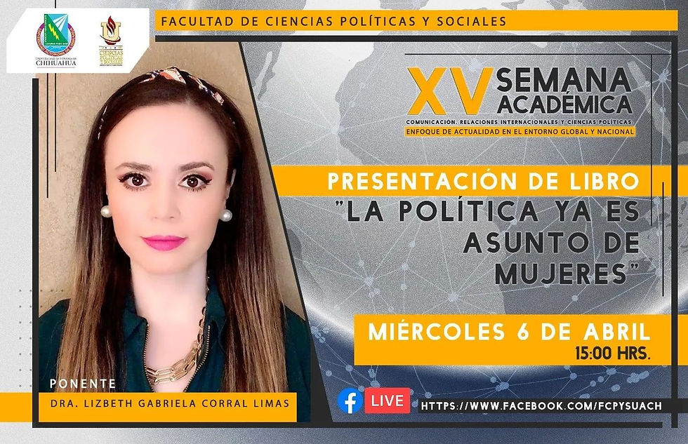 El pasado 6 de Abril del 2022, la Dra. Lizbeth Gabriela Corral Limas, impartió una platica acerca de su nuevo libro "La política ya es asunto de mujeres" con colaboración de la Lic. Yolanda Morales y la Lic. Verónica Lozano, en donde explican que las mujeres eran y son parte fundamental de los órganos superiores del estado, nos dan una reseña histórica del estado de Chihuahua en donde mencionan antiguas mujeres que ocupaban cargos importantes para el manejo político de un estado.